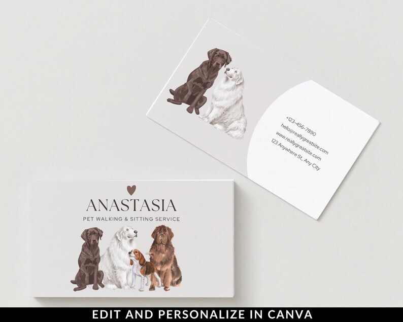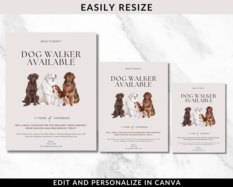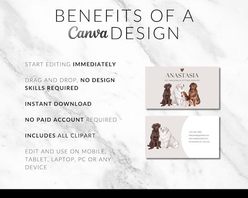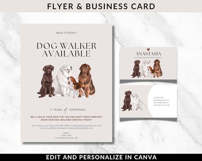 Customizable Dog Walking Flyer and Business Card, Bundle for Dog Walkers, Pet Sitters, Pet Care Business, Editable Canva Templates